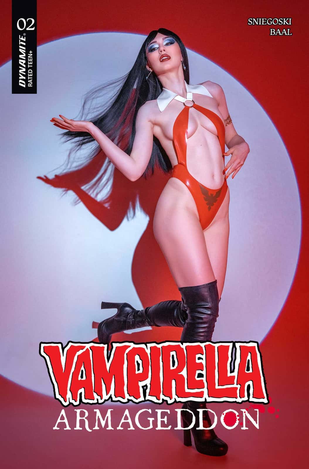 The devilishly talented team of writer TOM SNIEGOSKI and artist KEWBER BAAL fan the narrative flames in Vampirella: Armageddon #2 – stoked by superheated covers from FRANCESCO MATTINA, LESLEY “LEIRIX” LI, JOSEPH MICHAEL LINSNER, and fiery cosplay from LAUREN DELOREAN!