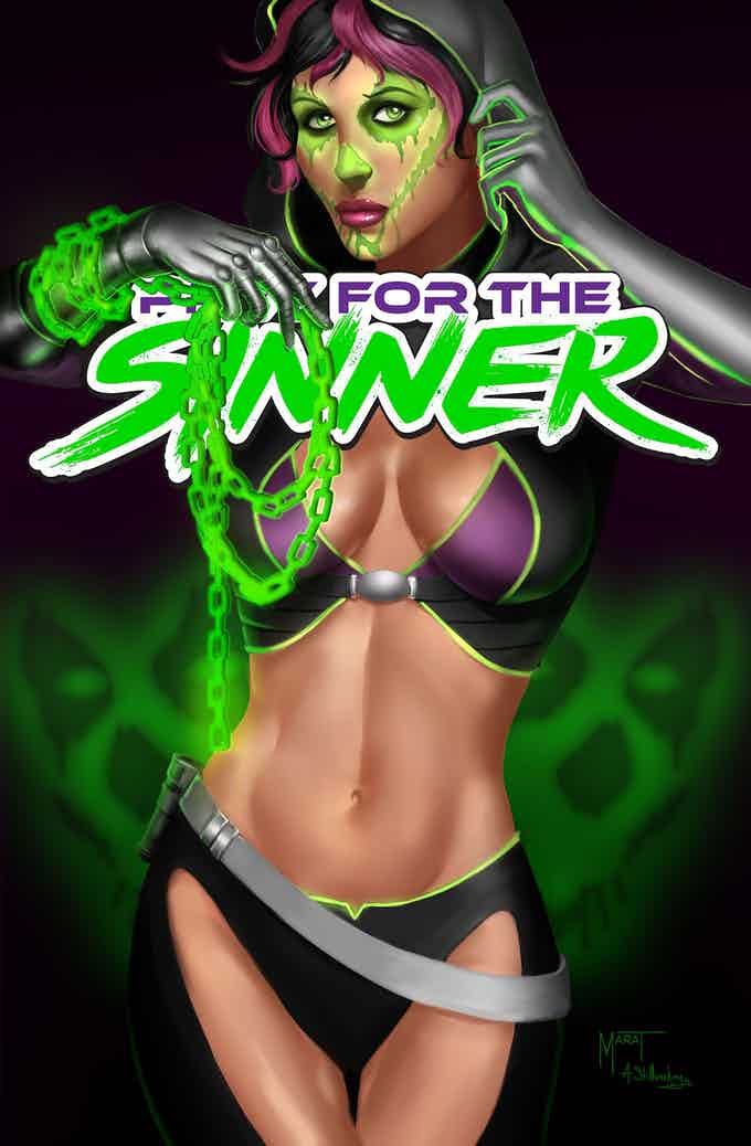 In Vampirella/Prey for the Sinner, Syn is rocketing through the galaxy for vengeance against her enemy Zyzz. But when he lands and hides on a mysterious planet by the name of Drakulon, Syn will have to team up with a powerful vampire-like alien heroine against their common foe. All to stop the cataclysmic doomsday virus that Zyzz has from being released.