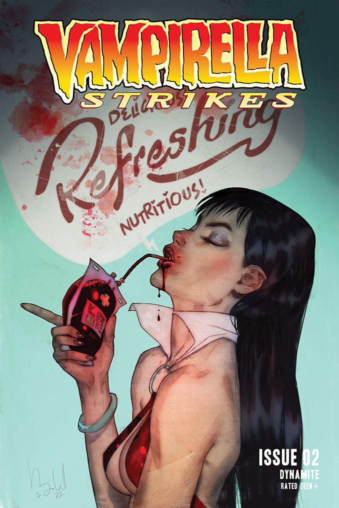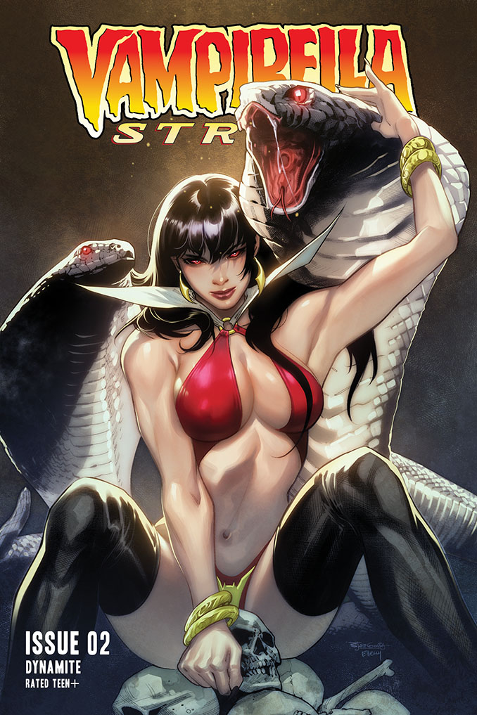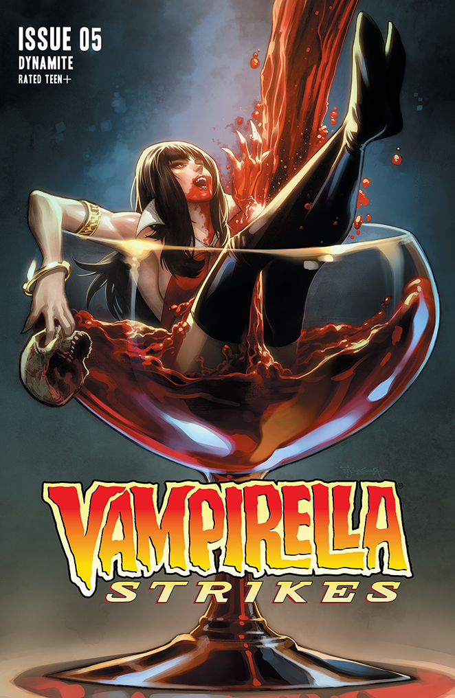 Dynamite Entertainment collects the first five issues of Tom Sniegoski and Jonathan Lau’s Vampirella Strikes this week with the release of the trade paperback Vampirella Strikes: Hell on Earth; check out the official preview below along with the series’ cover gallery…