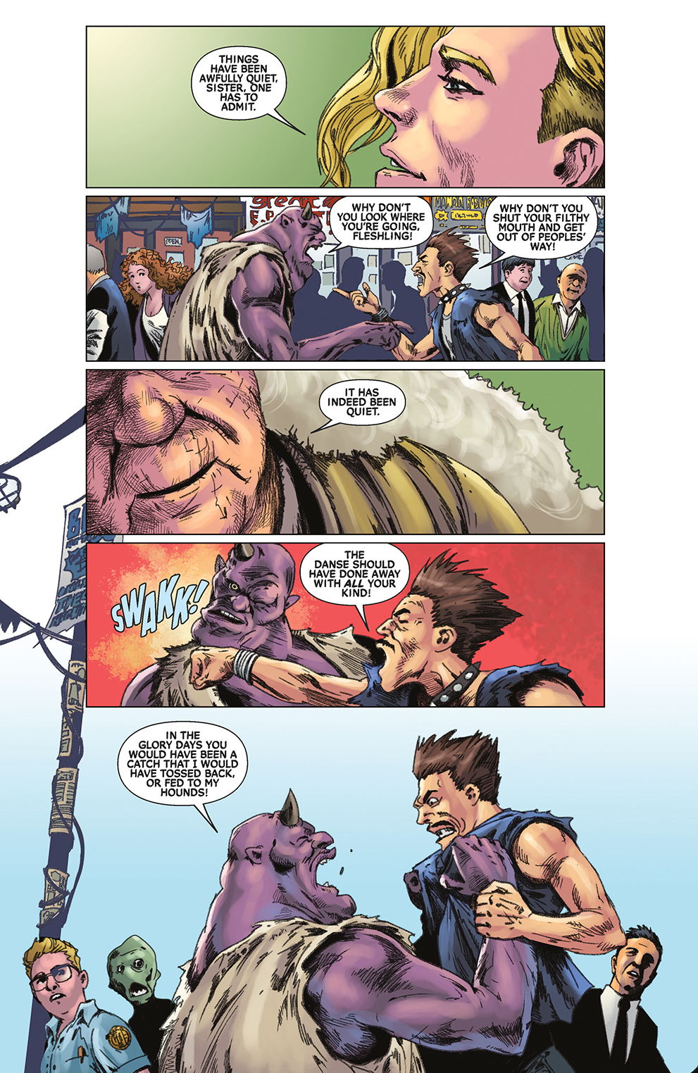 Sepulcher City has become a kind of microcosm of the world, humanity and the myriad monster races living in — not too perfect — harmony. It is a dark place, a violent place, one where a balance must be kept so order will remain. Vampirella works as a special agent for the Danse Macabre on the most complex, and potentially violent of cases. Sepulcher City is where she spends most of her time, but often she is called out of the city, out into the world to deal with similar situations.