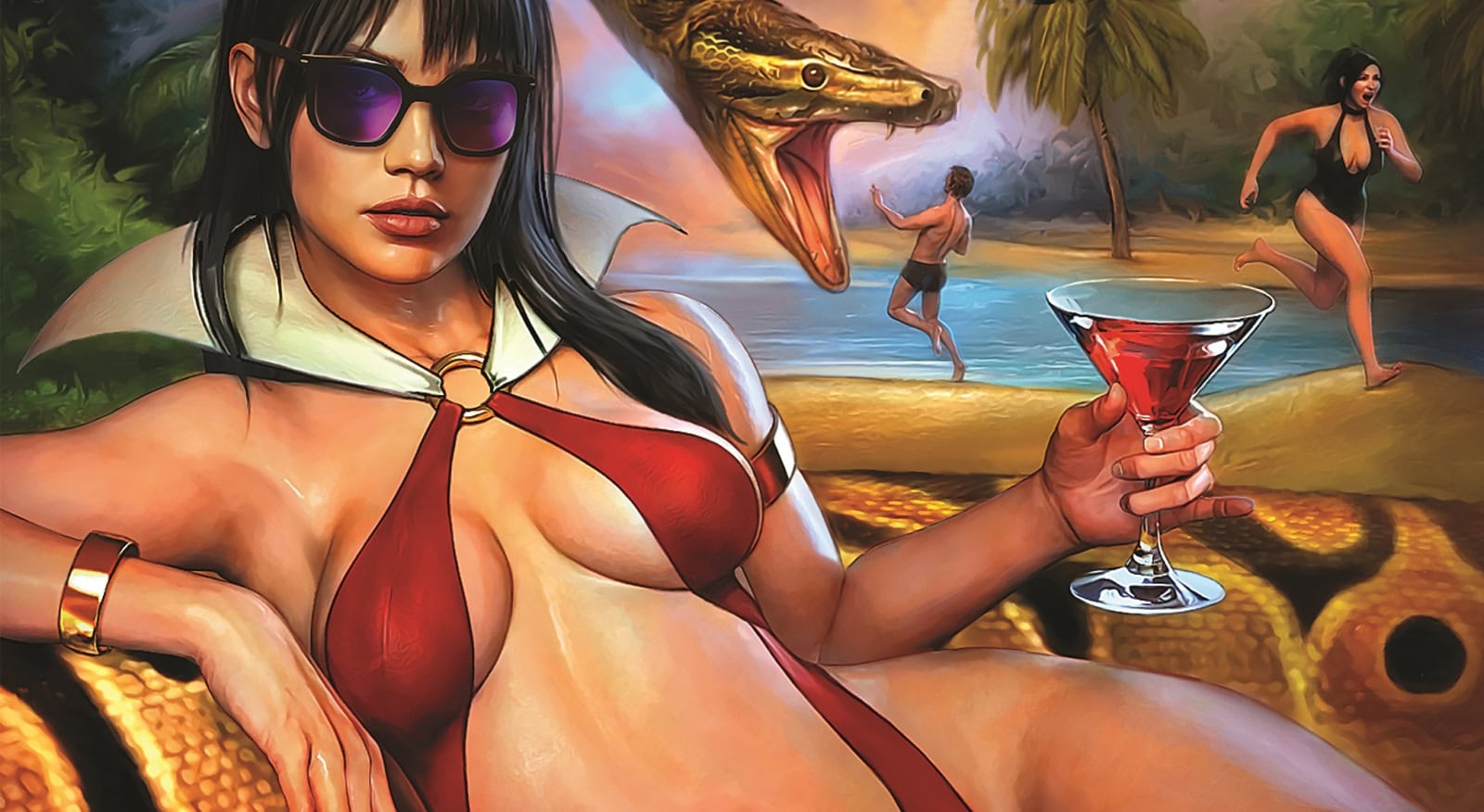 Even immortal vampires (or is she an alien? both!) need a little bit of time off for rest and relaxation. Diehard fans know too that Drakulonians do not share the weakness to sunlight that traditional undead vampires do, so she’s totally clear to hit the beach. But despite being shore-compatible, other parts of Vampirella’s life inevitably lead to complications in even the best planned vacation getaways!
