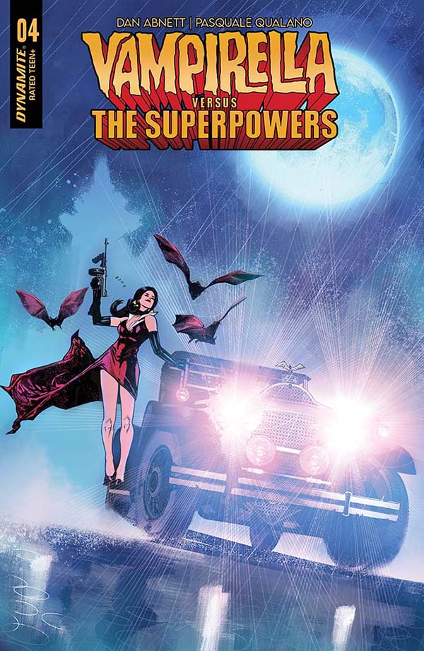 Vampirella and her trusty sidekick Dyna Might have become superheroes, and are assigned to save a world that looks strangely similar to 1940s Earth — rife with crime, corruption, and two-fisted superheroes who don’t take kindly to meddling from interdimensional vampire aliens! Can Vampirella survive an onslaught of conflict from villains and heroes alike, all while solving a murder mystery and keeping her precocious sidekick alive? Find out in this full-throttle throwback action adventure!