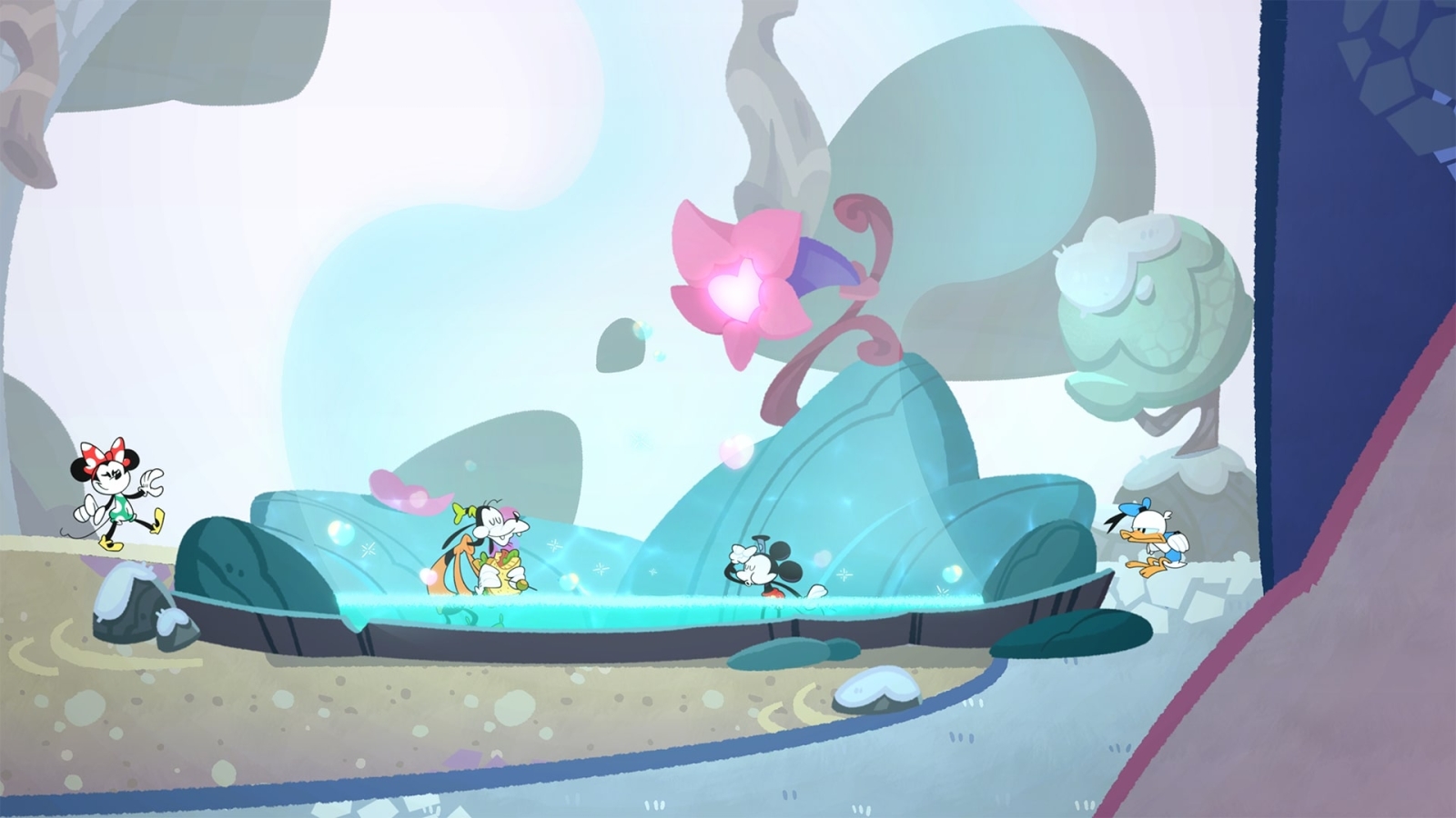 Incidentally, that is Disney Illusion Island’s main selling point; it has an abundance of charm seeping through in every facet of its design. First of all, the art-style authentically replicates the look & feel of a modern Mickey Mouse cartoon. It’s bright, colourful and expressive; leaving you with a constant smile on your face that won’t fade, no matter how many times you have to redo a given section.