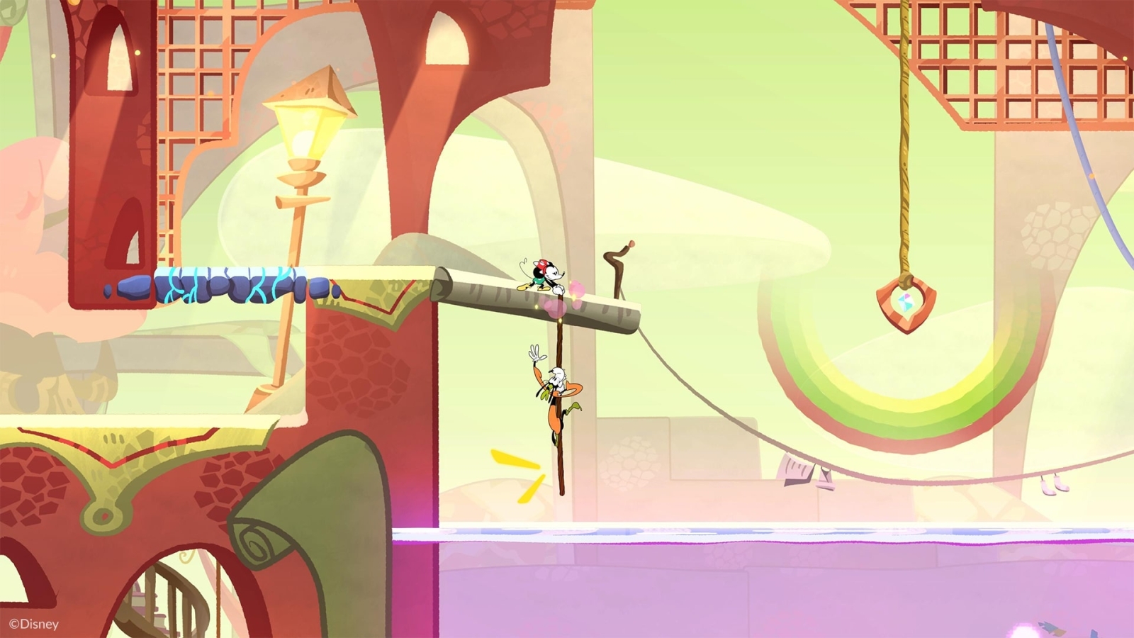 In addition to this, less seasoned players can make the experience even more approachable by recruiting a friend into the couch co-op mode. Not only does this prevent you from being faced with a game-over screen every single time that you run out of health (given that your partner can revive you at the next checkpoint), but it also unlocks some special, multiplayer-specific interactions. For instance, you can leapfrog over each other to cover more distance, teleport to one another’s location when swimming, and toss down a climbable rope if one of you has managed to get a bit further ahead. They’re all really cute mechanics that incentivise teamwork and kindness, in a way that perfectly fits the Mickey Mouse brand.