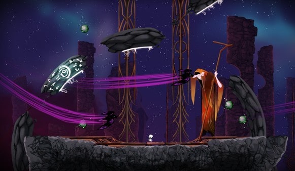 Finally, we get to the section I have been waiting to talk about, and that is of course the gameplay. Evergate is built around a mechanic called the “Soulflame,” a targeting system that Ki uses to manipulate objects around her. Most of the time, it comes down setting-off preplaced “power-ups,” resembling gems, that cause a variety of effects. Gold ovals, for example, blast you into the air, orange stars turn you into a fiery wisp, and hourglasses instantly teleport you amongst a plethora of others.