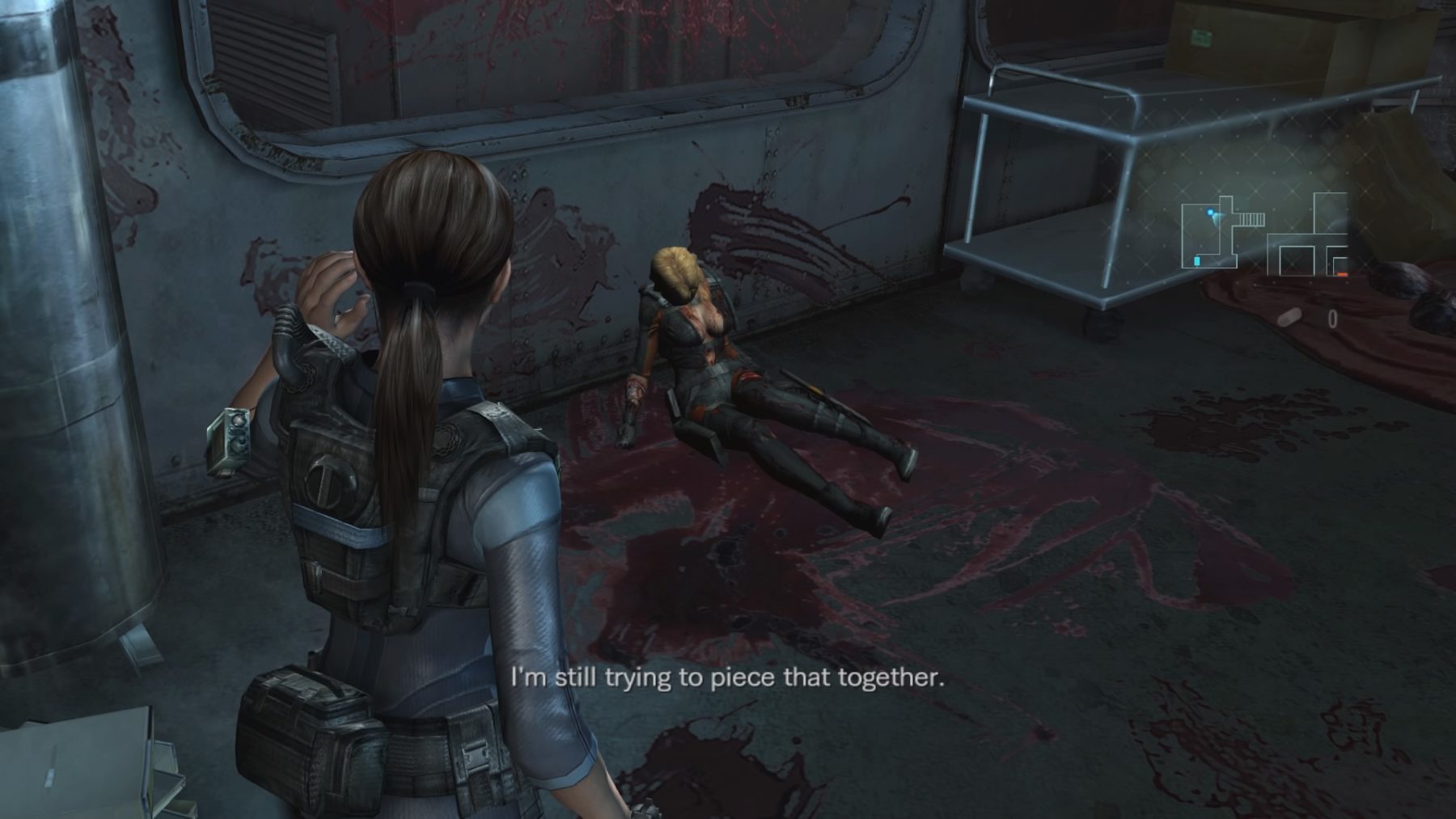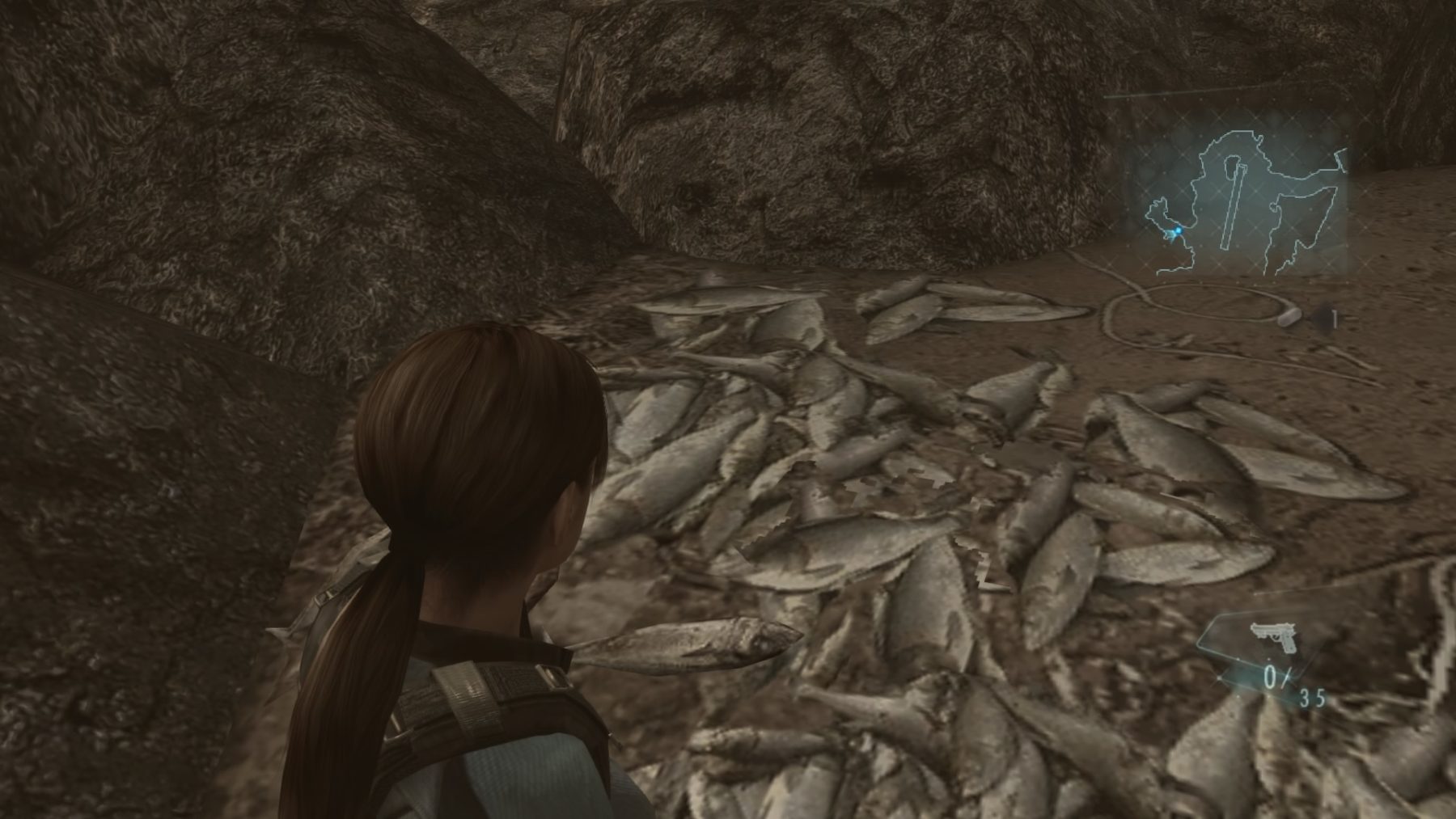 As you’d expect, resources are scarce in Resident Evil: Revelations, but it’s not as straightforward as you might have thought. Ammo, green herbs and grenades are fairly scarce and you will have to conserve, especially if you want to beat certain bosses down the line without struggling. However, the game also introduces the ‘genesis’ mechanic, which is a scanner that’ll reveal hidden items throughout the levels, while also providing you with free healing items after scanning so many enemy corpses. If you tend to scan every room as you pass, you should be fully topped up on ammo most of the time, most of the game’s gun upgrade parts are hidden in this way as well. It’s just an odd thing to do in a game like this, because it doesn’t feel relatively skillful, it’s more time-consuming than anything, but it does give you a reason to explore each zone as opposed to just fast-tracking it to the objective every time. The lay-out is also an odd one because it is exploration-heavy, but it also jumps about between several time-lines, characters and plots throughout the game’s 12 chapters, not always making a lot of sense.