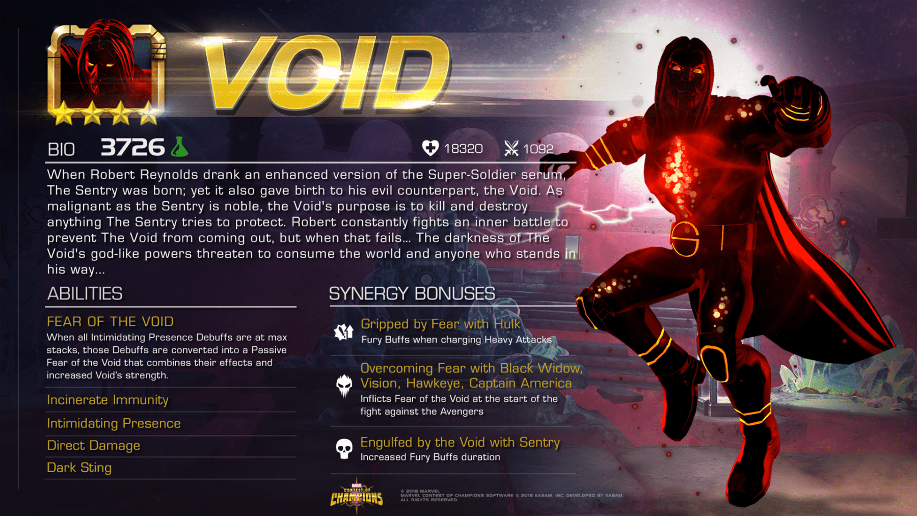 Kabam has announced that Sentry’s evil counterpart – the Void – has become the latest addition to the roster of Marvel Contest of Champions. Check out his bio, gameplay trailer and stats below…