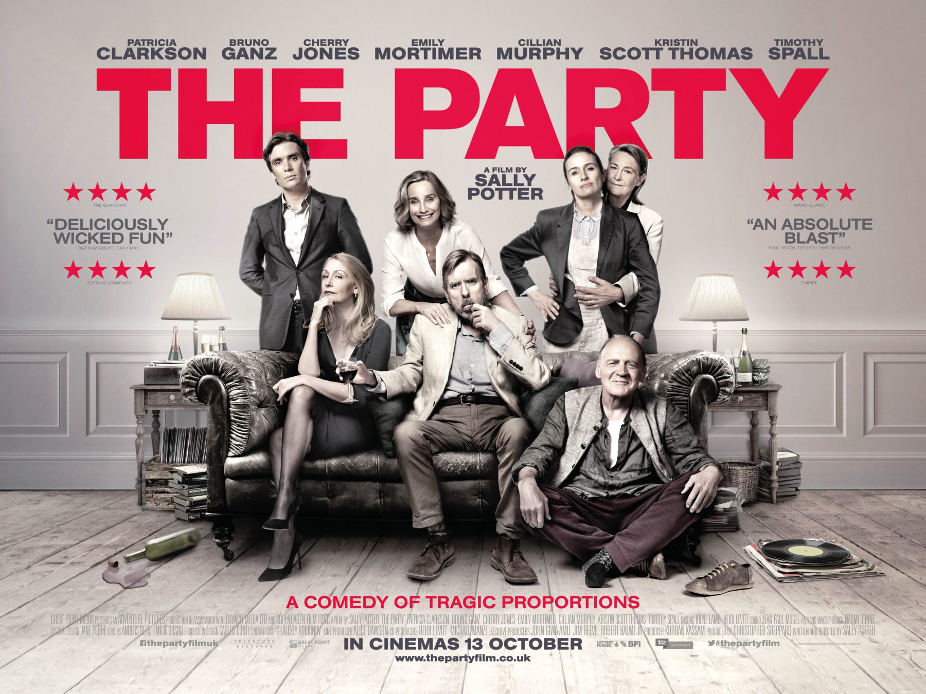 The Party is set for release on October 13th and features a cast that includes Patricia Clarkson, Bruno Ganz, Cherry Jones, Emily Mortimer, Cillian Murphy, Kristen Scott Thomas and Timothy Spall.