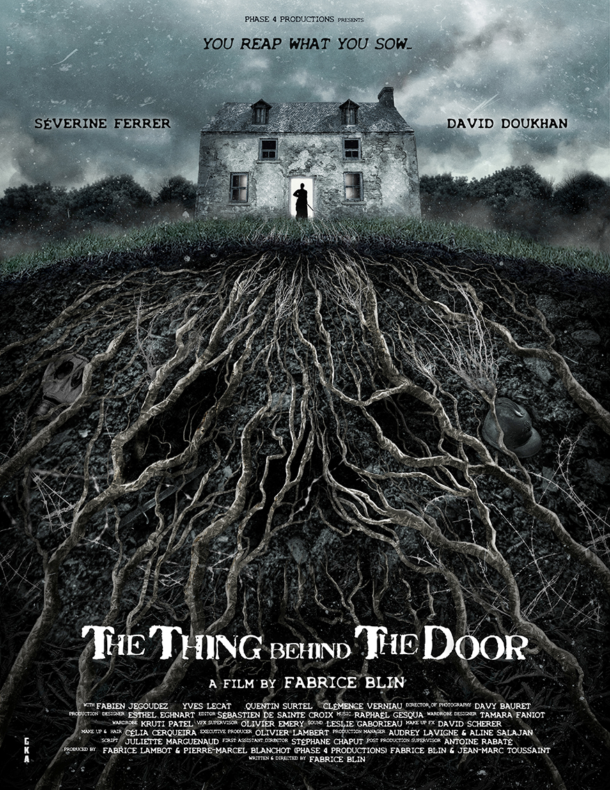 THE THING BEHIND THE DOOR tells the story of a young woman haunted by the death of her husband who was killed in a trench during World War I. Unable to accept the tragic loss, the young woman turns to black magic in the hopes of bringing her lover back. He comes back to haunt her in her dreams and asks to find an antic spell-book that holds the formula to bring him back to life. Summoning magic from the druids, combining the forces of nature with her own blood, Adèle is obsessed by the potential return of her beloved husband. She ignores, as she performs the supernatural ceremony, that she becomes The Chosen One of a very ancient lineage of vegetal incubi, craving to perpetuate their race. What she resuscitates is a terrifying, unstoppable, and indestructible creature. A thing lurking behind the door, willing only to give Adèle the child that she was promised before the war.