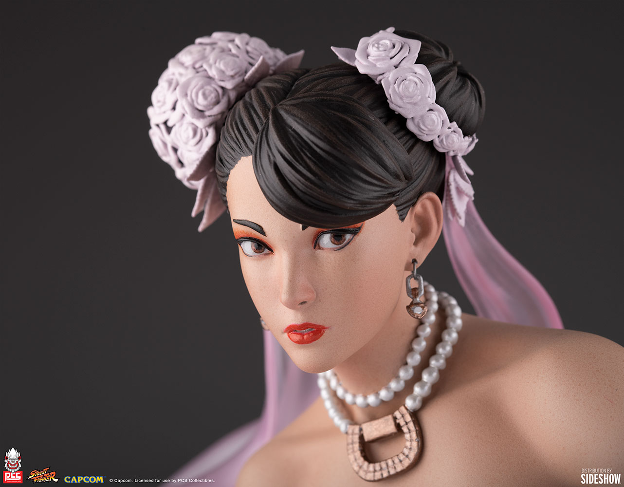Inspired by the Street Fighter V DLC alternate costume, the Wedding Dress Chun-Li Statue faithfully recreates her in-game character model as a beautiful, three-dimensional video game collectible. Her costume is fully sculpted and features detailed textures to mimic dynamic fabric movement and lace-like elements. Chun-Li’s wedding dress is also decorated with clusters of roses, and two sheer sculpted ribbons add a touch of elegance to her signature hair buns. The ensemble is finished with jewelry accents including earrings, a necklace, and anklets. Dressed to impress, Chun-Li is sure to stun — in more ways than one — when paired alongside your other video game collectibles.