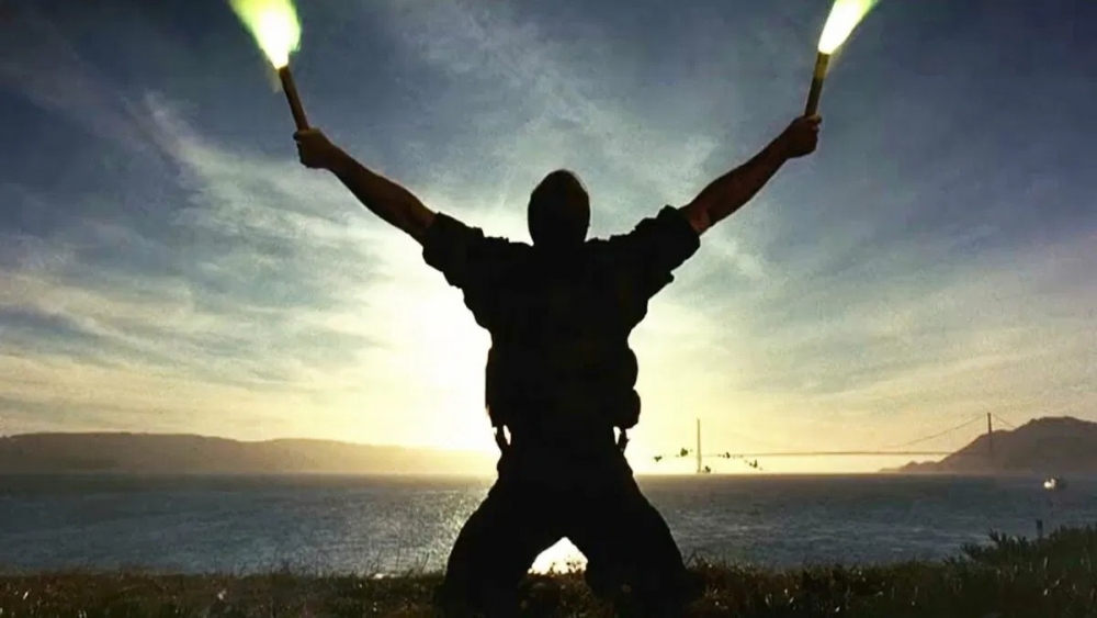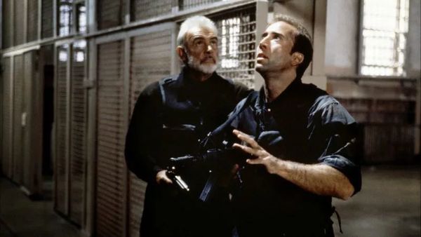 Released 25 years ago this week, The Rock follows a group of soldiers led by Ed Harris’ General Hummel, a legendary and honourable officer who recruits several of his men and other disillusioned soldiers to take control of Alcatraz Island with plenty of hostages. In order to right a wrong done to the deceased men under his command, Hummel has stolen a very deadly and unstable nerve gas and is threatening to unleash it on San Francisco unless his demands are met. That’s when the FBI brings in Cage’s Stanley Goodspeed, the Bureau’s top specialist in chemical weapons, and Connery’s John Mason, an ex-British spy who has been held captive by the US government for three decades and is the only known person to have ever successfully escaped Alcatraz. Together, they have to sneak into Alzatraz with a team of Navy SEALS and stop Hummel from launching his viral missiles.