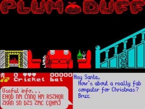 For our first classic Christmas game we travel back to 1985 with Bug Byte’s Plum Duff, where we take the role of the big man himself, Santa Clause. In this festive fayre, Santa has had a bit too much sherry and is more merry than usual, unfortunately it has resulted in all the wrong presents going in the children’s stockings. However, there’s still time to revisit all 32 houses with the wrong presents and make things right…. that is if you can avoid the man-eating house plants that wander around the houses. Oh and waking the children is a huge no-no.