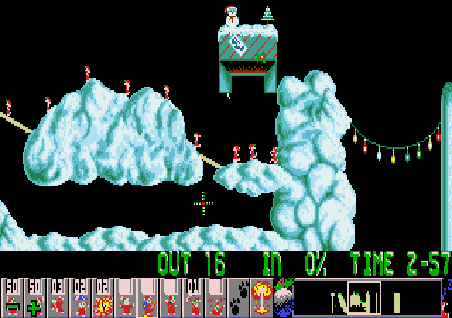 Puzzle fans weren’t left out between the Christmas’ of ’91 and ’94 thanks to DMA Designs and Christmas Lemmings (or Holiday Lemmings as it was called for our American cousins). This popular series of Christmas Lemmings titles began in 1991 as a demo featuring just two seasonal themed levels added to two levels promoting Oh No! More Lemmings! In 1992 another demo was released featuring four themed levels with seasonal music in the typical Lemmings style and our adorable green haired suicidal creatures all wore Santa outfits. Both 1993 and ’94 saw a full game released each consisting of 32 levels, Christmas music and all the festive decorations you could hope for. Watching 50 Santa clad lemmings scream “oh no!” as they exploded was still as enjoyable as in all the other games.