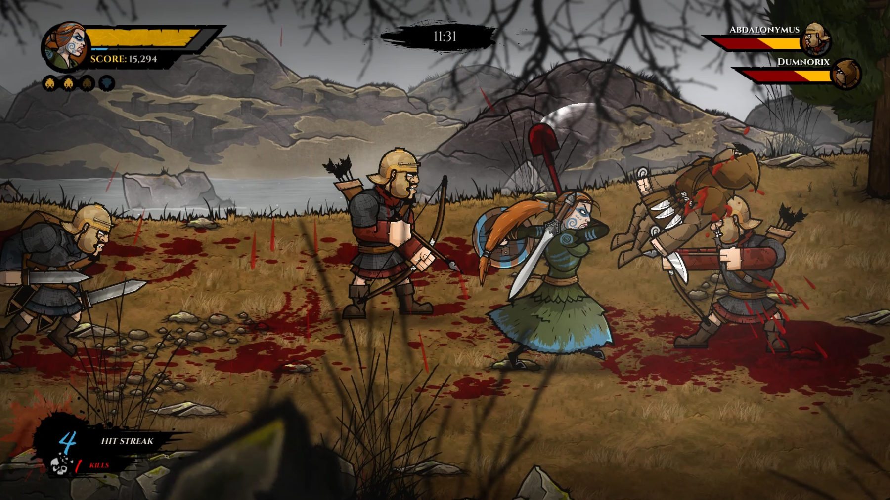 With eight levels overflowing with sharp blades, blood-thirsty hordes and deadly arenas, Wulverblade invites you to slice through the invading 9th Legion in graphic detail on your own – or enlist a friend for the slaughter in two-player co-op.