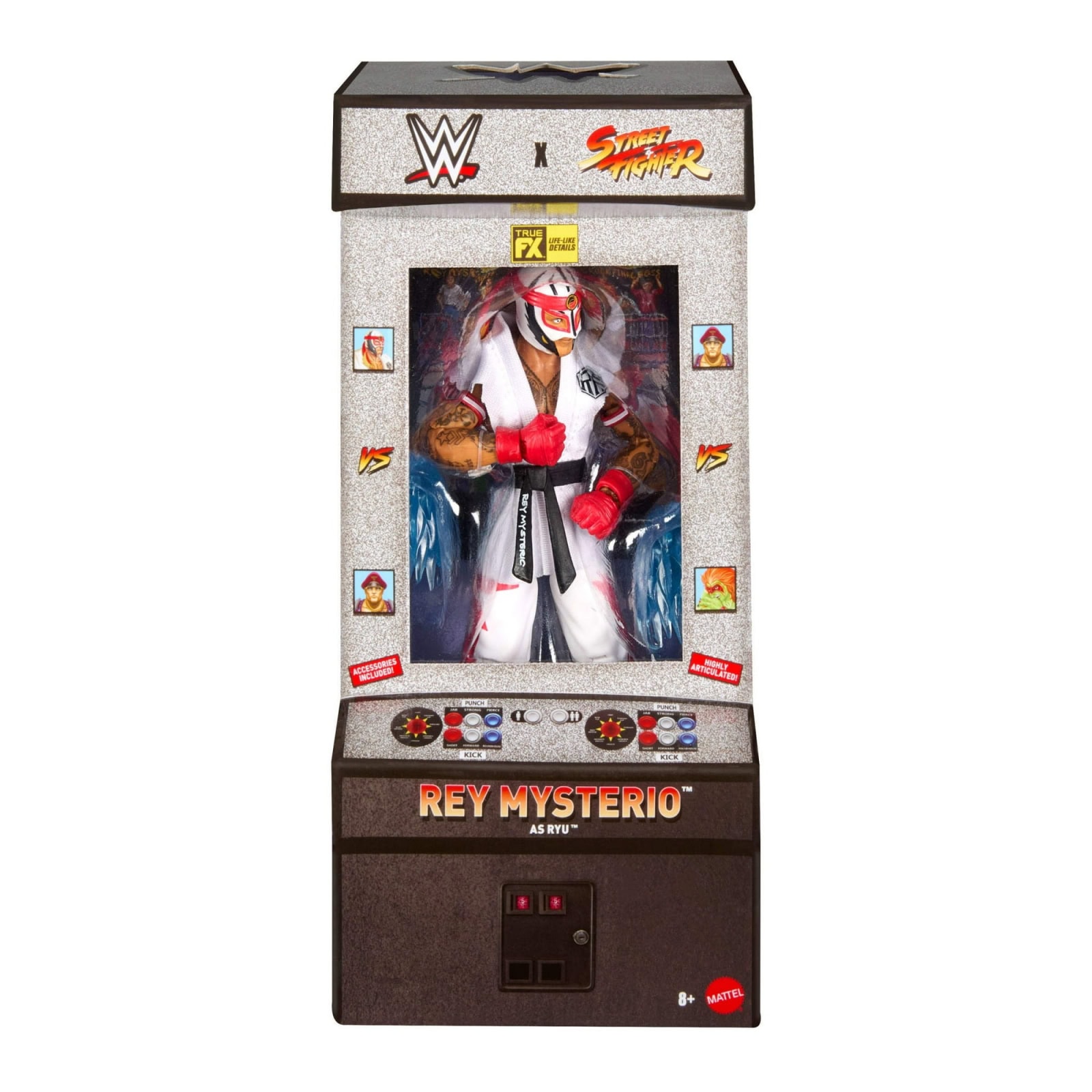 WWE and Street Fighter collide in the ultimate mashup! Each figure in this Elite Collection combines a fan-favorite WWE Superstar with a character from the all-time favorite Street Fighter video game. The 6-inch figures feature 25 points of articulation and TrueFX detailing for life-like poses. Swappable hands and iconic accessories pack additional punch for play and display. Fans will love the retro-style packaging that pays tribute to the original arcade game and adds more pow for collectors, who will want them all! Each sold separately, subject to availability. Colors and decorations may vary.