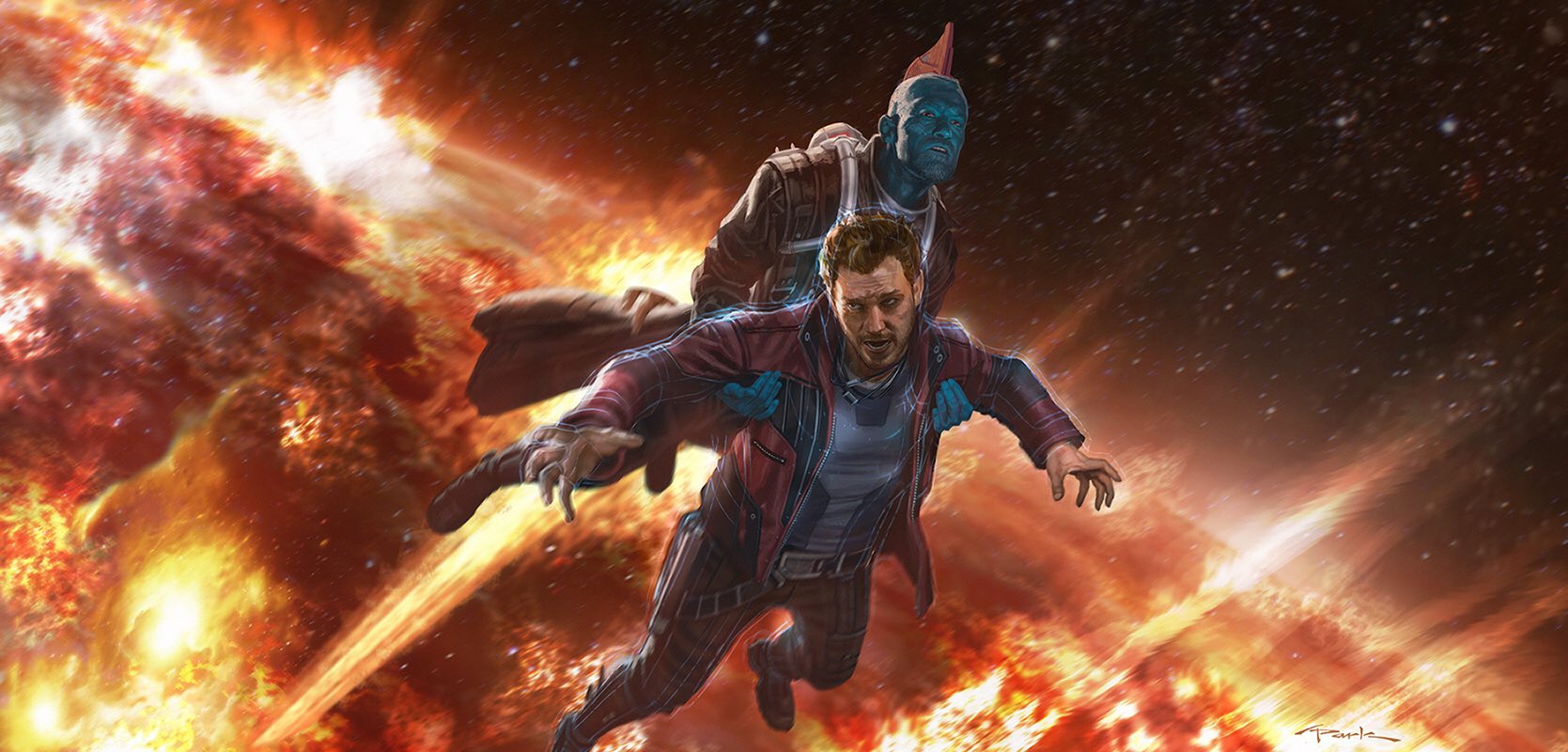 Marvel’s visual development supervisor Andy Park has taken to Twitter to share a piece of concept art from Guardians of the Galaxy Vol. 2 which depicts Star-Lord and Yondu’s tragic escape from the destruction of Ego the Living Planet; take a look at the artwork here…