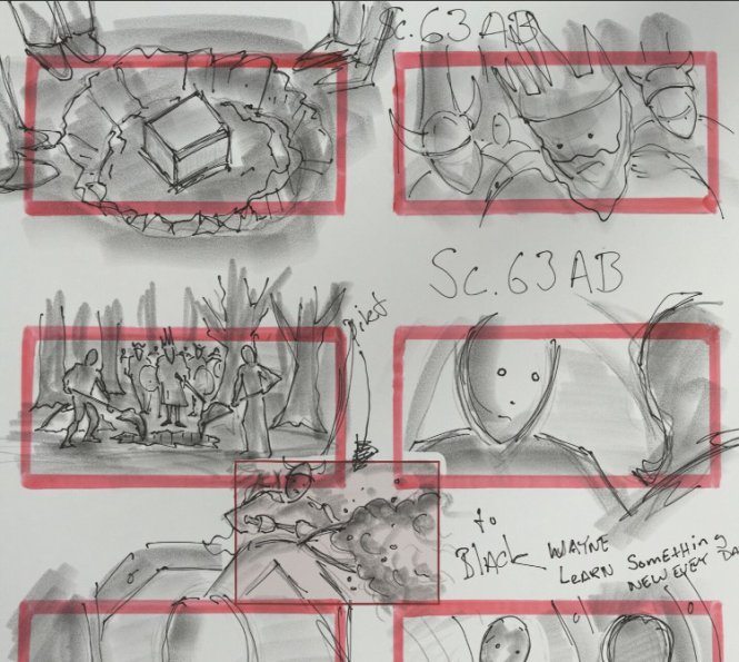 Zack Snyder has shared some storyboard art from the upcoming DCblockbuster Justice League which depicts a scene previously glimpsed in the Comic-Con trailer where a king and his knights bury one of the three Mother Boxes, presumably following a war between the inhabitants of Earth and the New Gods.